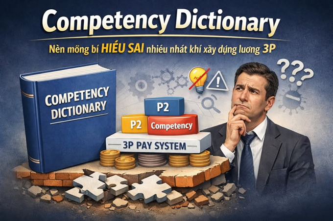 Đăng ký ngayTrong nhiều năm làm tư vấn và trao đổi với cộng đồng nhân sự, tôi nhận ra một nghịch lý khá thú vị rằng, hầu hết doanh nghiệp đều biết đến lương 3P, nhưng rất ít doanh nghiệp thực sự hiểu đúng “Từ điển năng lực” (Competency Dictionary). Phần lớn các tổ chức khi xây dựng hệ thống lương 3P thường tập trung rất nhiều vào P1 – Job evaluation, P3 – KPI và Performance. Trong khi P2 – Competency (lương năng lực) lại thường được xây dựng khá “cảm tính”. Hệ quả là khung năng lực thiếu logic; đánh giá năng lực thiếu cơ sở; hệ thống lương 3P vận hành không ổn định. Và gốc rễ của vấn đề thường nằm ở một thứ tưởng như rất đơn giản: Competency Dictionary – Từ điển năng lực.